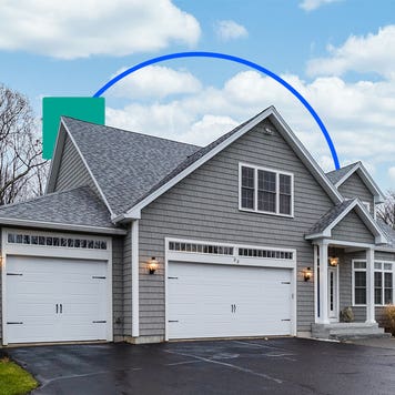 The exterior of a two-story single-family home with attached garage and driveway